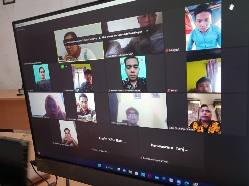 Lima Puluh_Bawaslu Batu Bara – Dalam rangka mengoptimalkan pelaksanaan pengawasan verifikasi faktual kedua data dukungan minimal bakal calon anggota DPD, Bawaslu Batu Bara menyelenggarakan Rapat Koordinasi bersama Panwaslu Kecamatan se-Kabupaten Batu Bara secara daring melalui Zoom pada Rabu (29/03/2023).